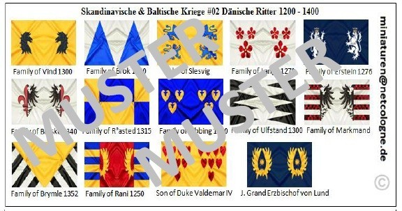 14 verschiedene Fahnen Motive Dänische Ritter