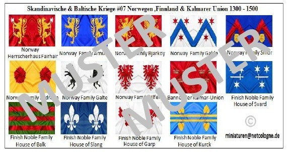 NorwayHerrscherhaus Fairhair, Norway Family Arnung, Norway Family Bjarkoy, Norway Family Galde, Norway Family Smor, Norway Family Sudreim, Norway Family Galte , Norway Family Ulfeldt, Banner der Kalmar-Union, Finish Noble Family House of Svard, Finish Noble Family House of Balk, Finish Noble Family House of Slang, Finish Noble Family House of Garp, Finish Noble Family House of Kurck,