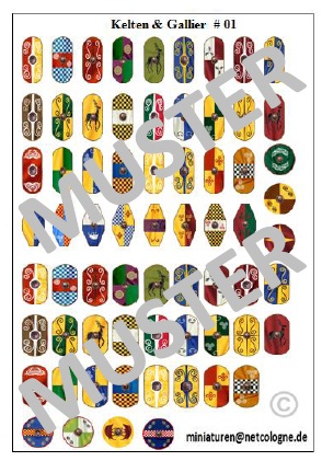 67 Schilde passend zu Gallier und Kelten Figuren im Maßstab 1:72. 4 verschiedene Größen & Formen für alle Hersteller GEALTERT