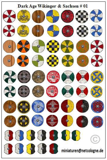 61 Schilde passend zu russischen Rittern des 11., 12. und 13. Jahrhunderts im Maßstab 1:72.