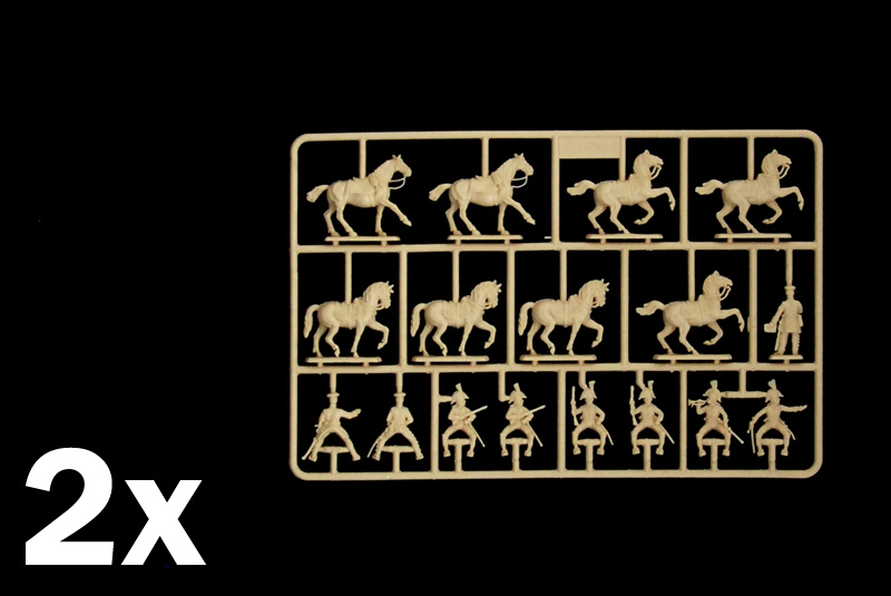 18 Figuren, 16 Pferde, Plastik, unbemalt, Maßstab 1:72