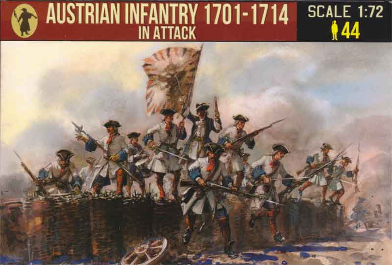 Dargestellt ist angreifende Österreichische Infanterie in der Uniformierung der Zeit des spanische Erbfolgekrieges von1701 bis 1714