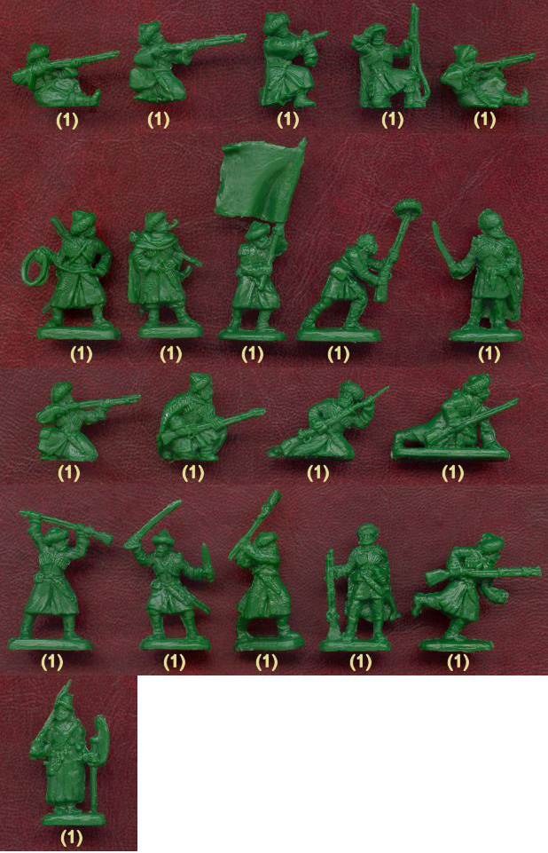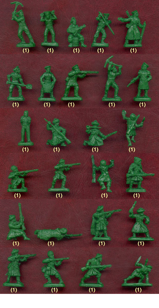 190 Figuren, Beinhaltet 4 Sets, davon eines welches nur in diesem, Set erhältlich ist (siehe Bild) und die alten Sets no. 024, 027, 033