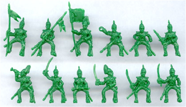 - Inhalt: 12 verschiedene Figuren, 12 Pferde im Maßstab 1:72, was einer Größe von 20-25mm entspricht