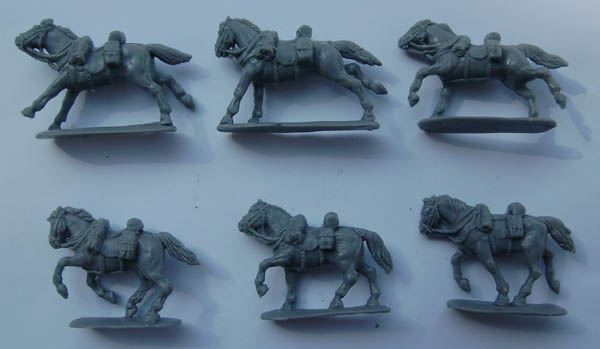 - Inhalt: 14 Figuren, 12 Pferde im Maßstab 1:72, Plastik, unbemalt, inklusive Kommandogruppe, im Maßstab 1:72, was einer Größe von 20-25mm entspricht