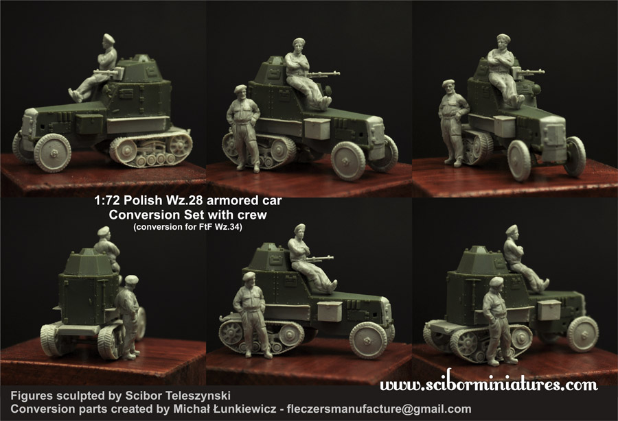 2 Figuren + Umbausatz für den Panzerwagen WZ.34 der Firma FTF. Damit kann ein polnischer Panzerwagen WZ.28 gebaut werden. Das Modell von FTF wird für den Bau benötigt und ist im Lieferumfang nicht enthalten!