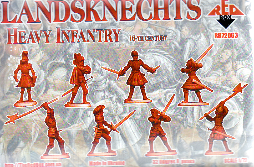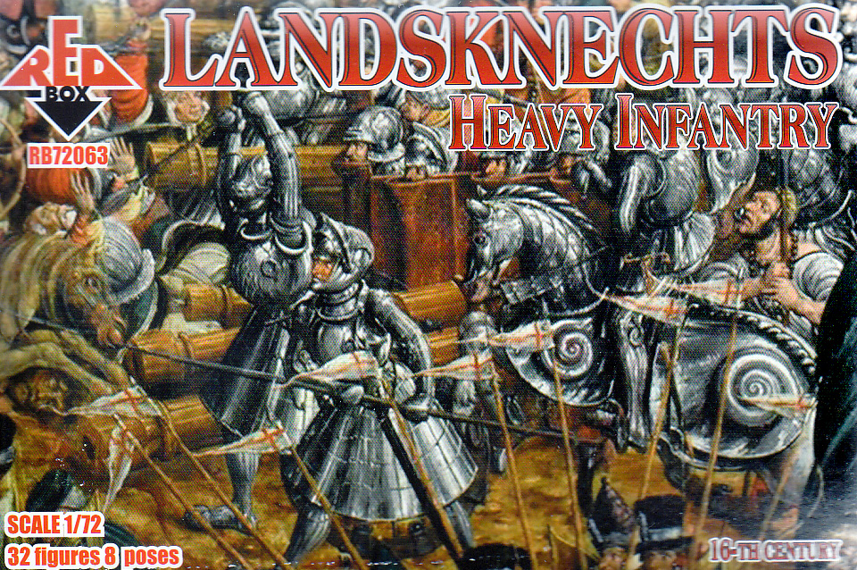 Dargestellt ist Schwere Infanterie der Landsknechte des 16. Jahrhundert im Maßstab 1:72. Als Landsknecht bezeichnet man einen zu Fuß kämpfenden, zumeist deutschen Söldner des späten 15. und des 16. Jahrhunderts, dessen primäre Waffe nach dem Schweizer Vorbild die Pike war.
