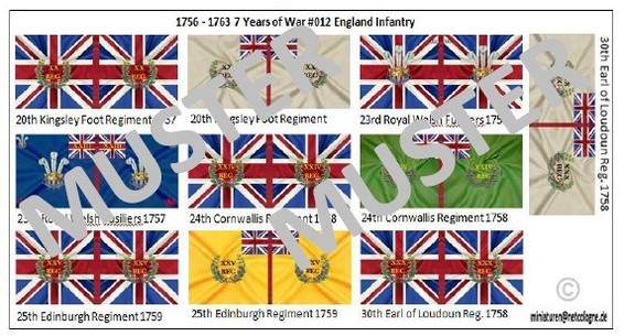 Die Flaggen und Fahnen sind durch die Bank falsch! Der Union Jack bestand bis 1801 lediglich aus dem roten englischen Georgskreuz auf weißem Grunde über dem weißen schottischen Andreaskreuz auf blauem Grunde. Das rote irische Patrickskreuz kam erst 1801 dazu!