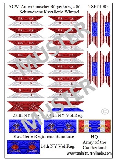 Diverse Kavallerie Regimenter / Regimentsstandarte , 14th NY Volunteers ,HQ for the Army of Cumberland