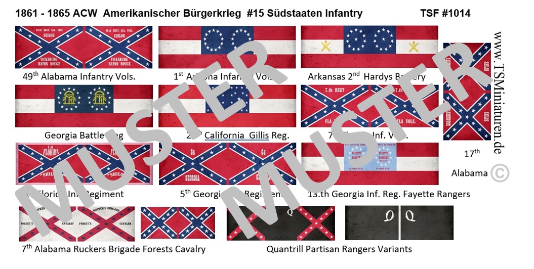 Amerikanischer Bürgerkrieg / ACW 15, Konföderierte / Südstaaten Infanterie, Fahnen 1:72