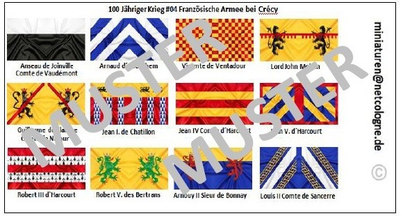 Anseaude Joinville Comte de Vaudémont, Arnaud d´Audrehem, Vicomte de Ventadour, Lord John Mohun, Guillaume de Flandre Comte de Namur, Jean I. de Chatillon, Jean IV Comred´Harcourt, Jean V. d´Harcourt, Jean V. d´Harcourt, Robert V. des Bertrans, ArnouyII Sieurde Bonnay, Louis II Comte de Sancerre