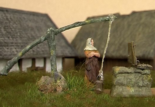1 ladder, 1 bench, 2 barrels, 1 bucket, 2 barrows